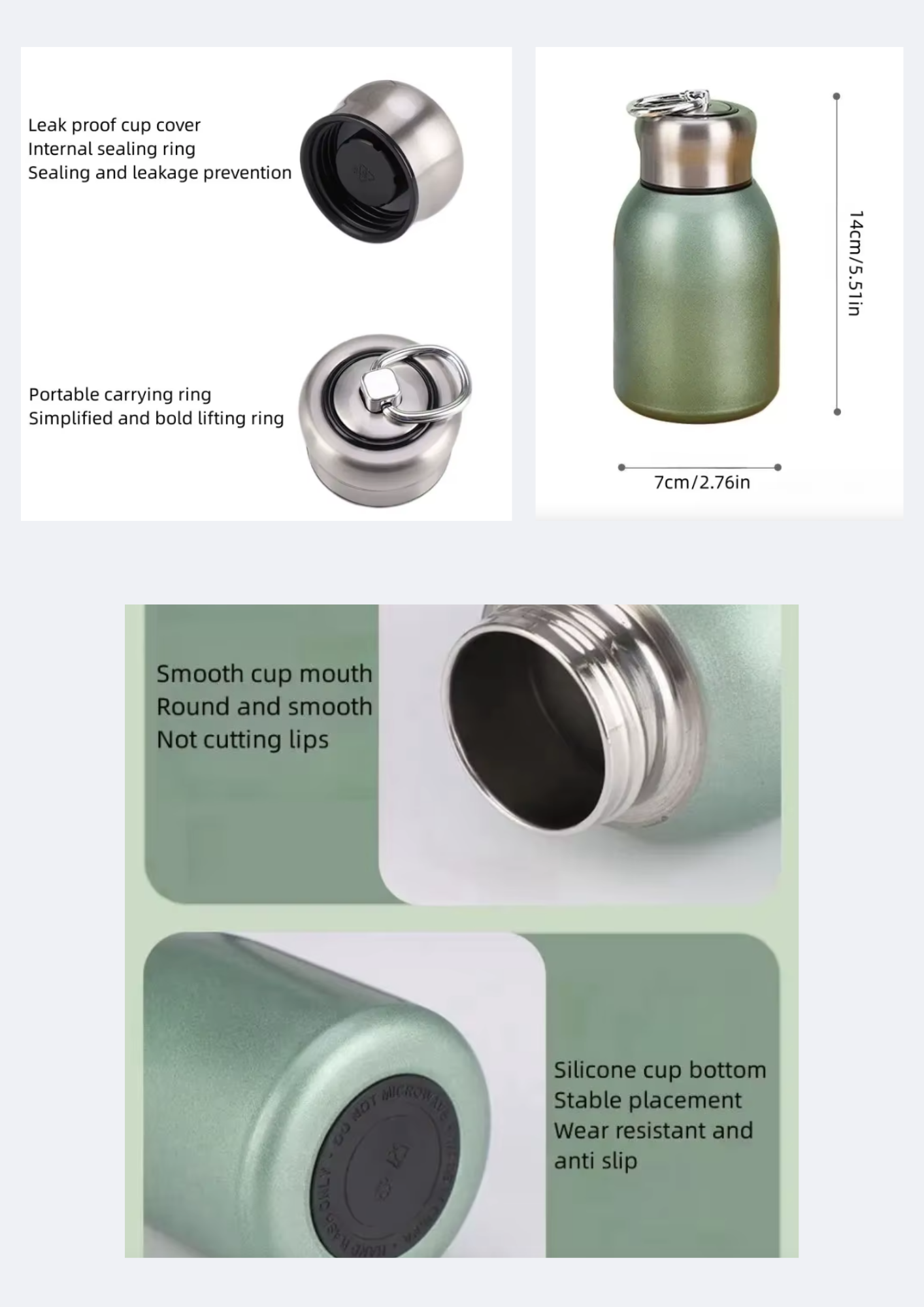 ✔️Perfect Temperature & Portability: Keep your favorite beverages at the ideal temperature for 12-24 hours while enjoying the convenience of a compact design that’s easy to carry anywhere you go - 300ml, height of 14cm, width of 7cm.